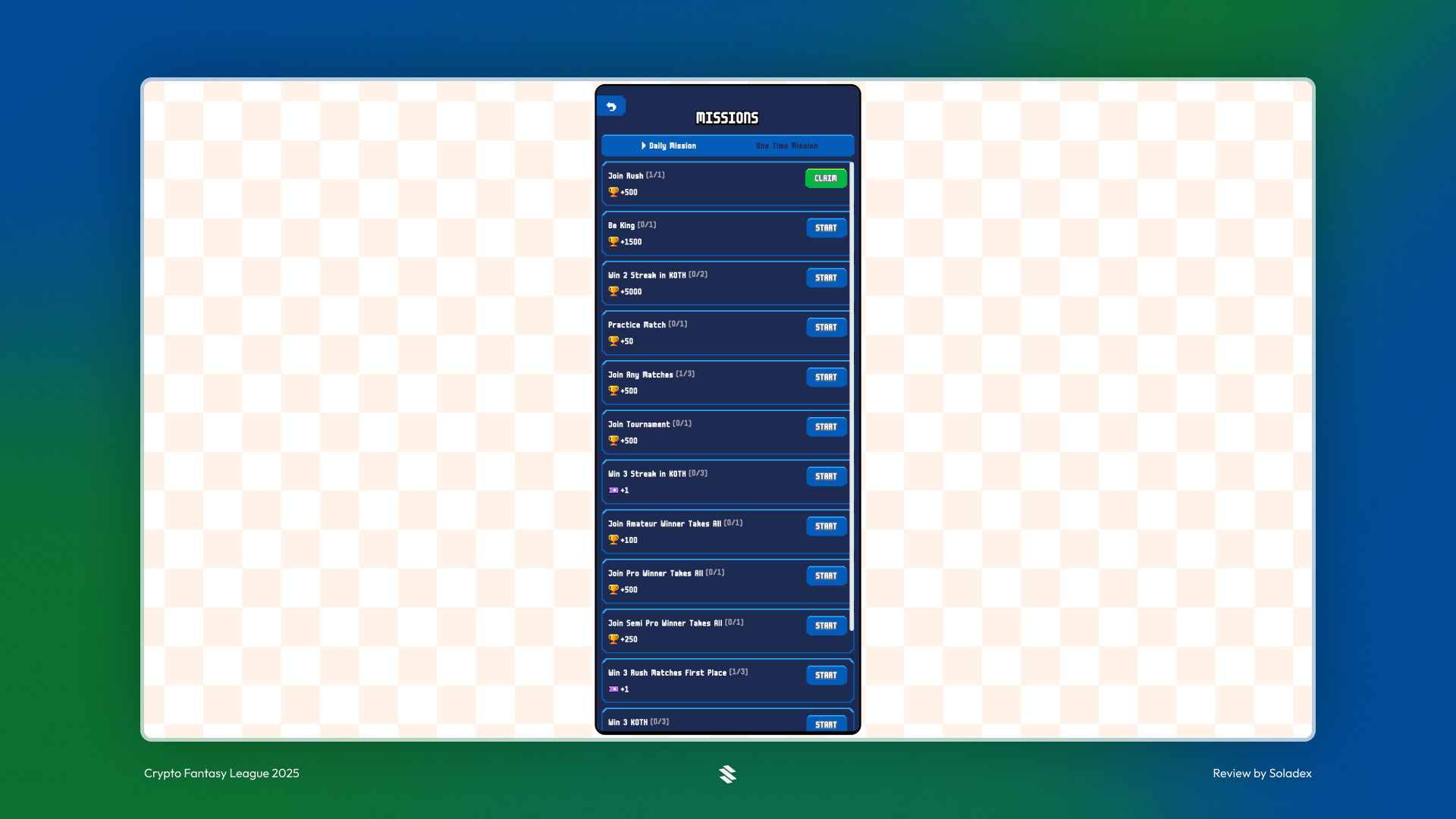 CFL has a missions section where all the available activities on Crypto Fantasy League are displayed. This is the best place to go to get informed about the multiple opportunities available on Crypto Fantasy League.