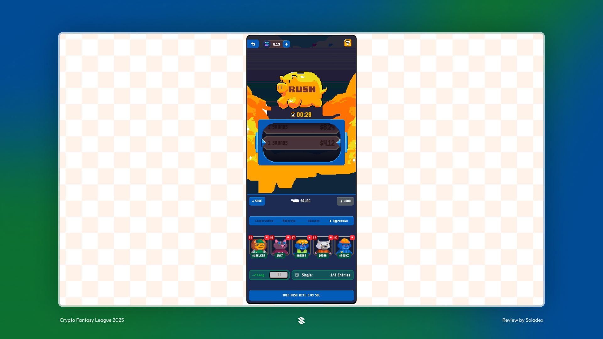 In Rush, users can long or short their tokens. As explained in the section above, these are the tokens that are used in the total scoring systems. Also, you must select a formation that matches your strategy. This can be conservative, moderate, balanced, or aggressive.