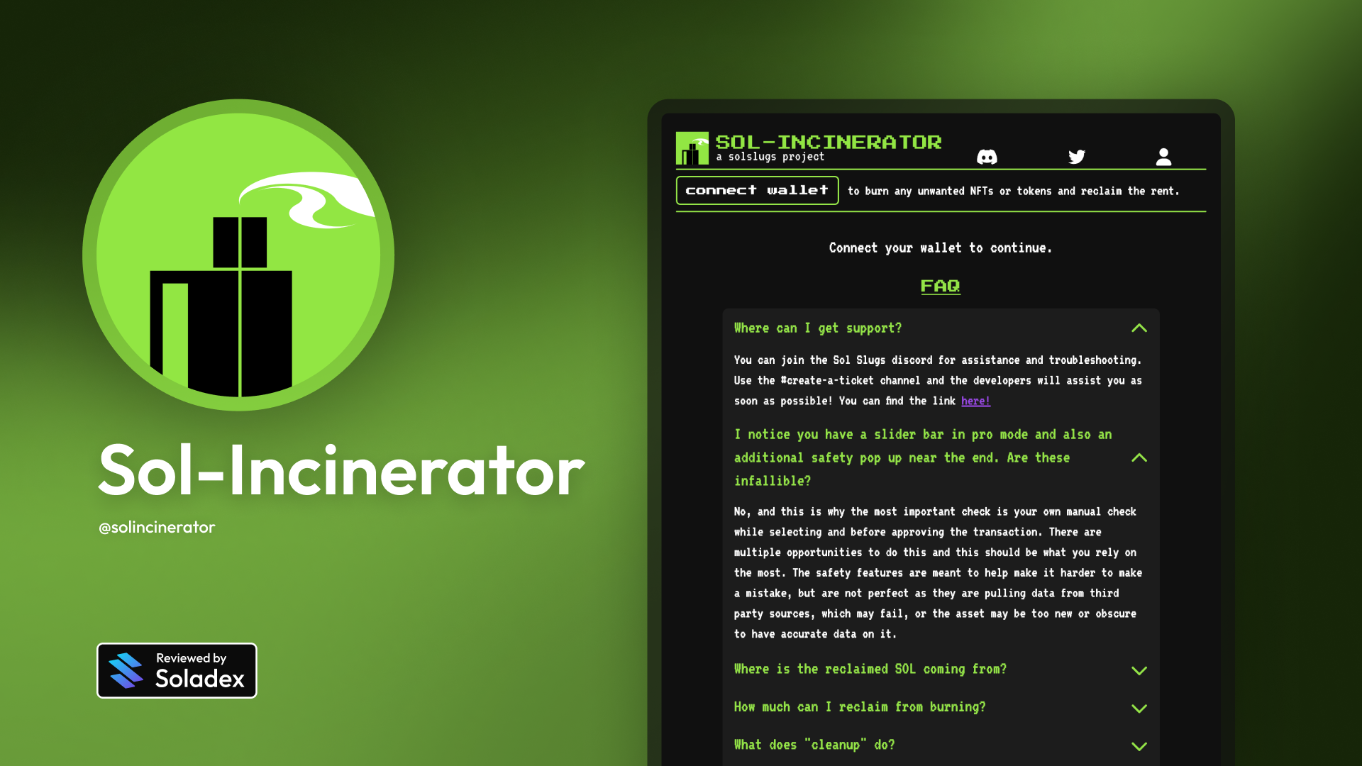 Sol-Incinerator helps you clean up your Solana wallet by identifying and burning spam tokens, worthless NFTs, and other digital junk that clutters your account. When you burn these unwanted assets, you actually get back the SOL that was locked up as storage rent, turning your wallet cleanup into a money-saving exercise.